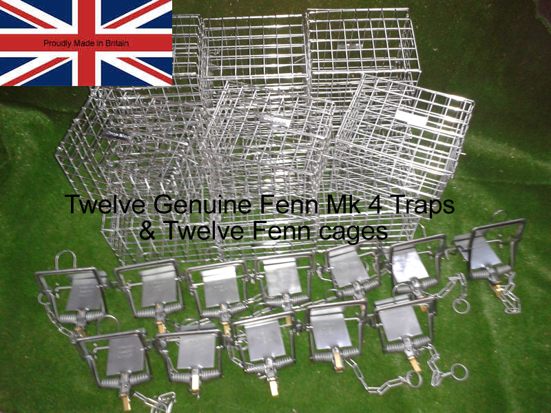 Bargain Buy 12 genuine Fenn Mk4 Traps and 12 Trap Cages