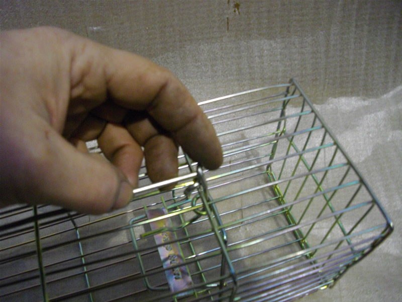 KisS1 setting. How to catch a rat using The Trap Man Rat trap, Bait with half cooked bacon OR kipper. put the bait on the hook inside the cage, then securely wire it to the hook. fuse wire or freezer bag wire works well .Once set and baited place rat trap with the gate near but not touching a wall, fence line or obvious rat run and at a right angle to it, so that the rats have to pass under the open cage door between the Rat trap and the wall or fence. Make sure the setting rod and cage door do not foul on rubbish or debris thus preventing the Rat trap operating effectively. lift the trap on to a brick or breeze block to prevent hedgehogs from gaining entry. Once baited visually check each day but avoid disturbing the trap.